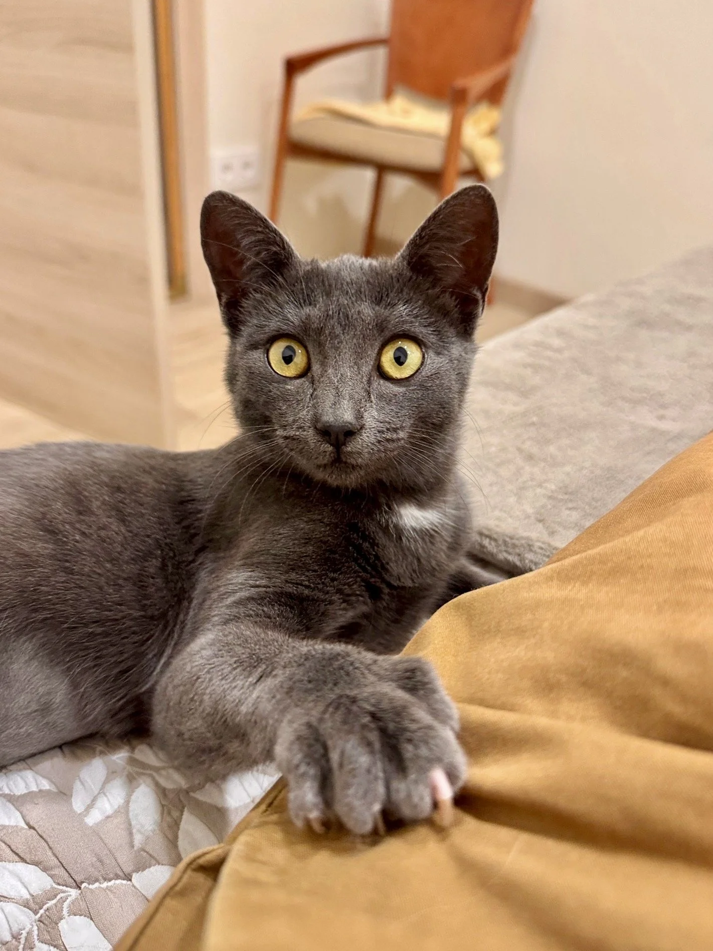 Angie is a calm and observant little cat, always keeping an eye on where you are. Sometimes she’ll want to be the center of all your affection: she’ll curl up on your lap or stretch out by your legs, enjoying every single caress 💞She loves company, and when she feels lonely, she’ll call you with soft little meows. Other times, she’ll simply prefer to watch the world with serenity, letting her big round eyes radiate peace and tenderness.
