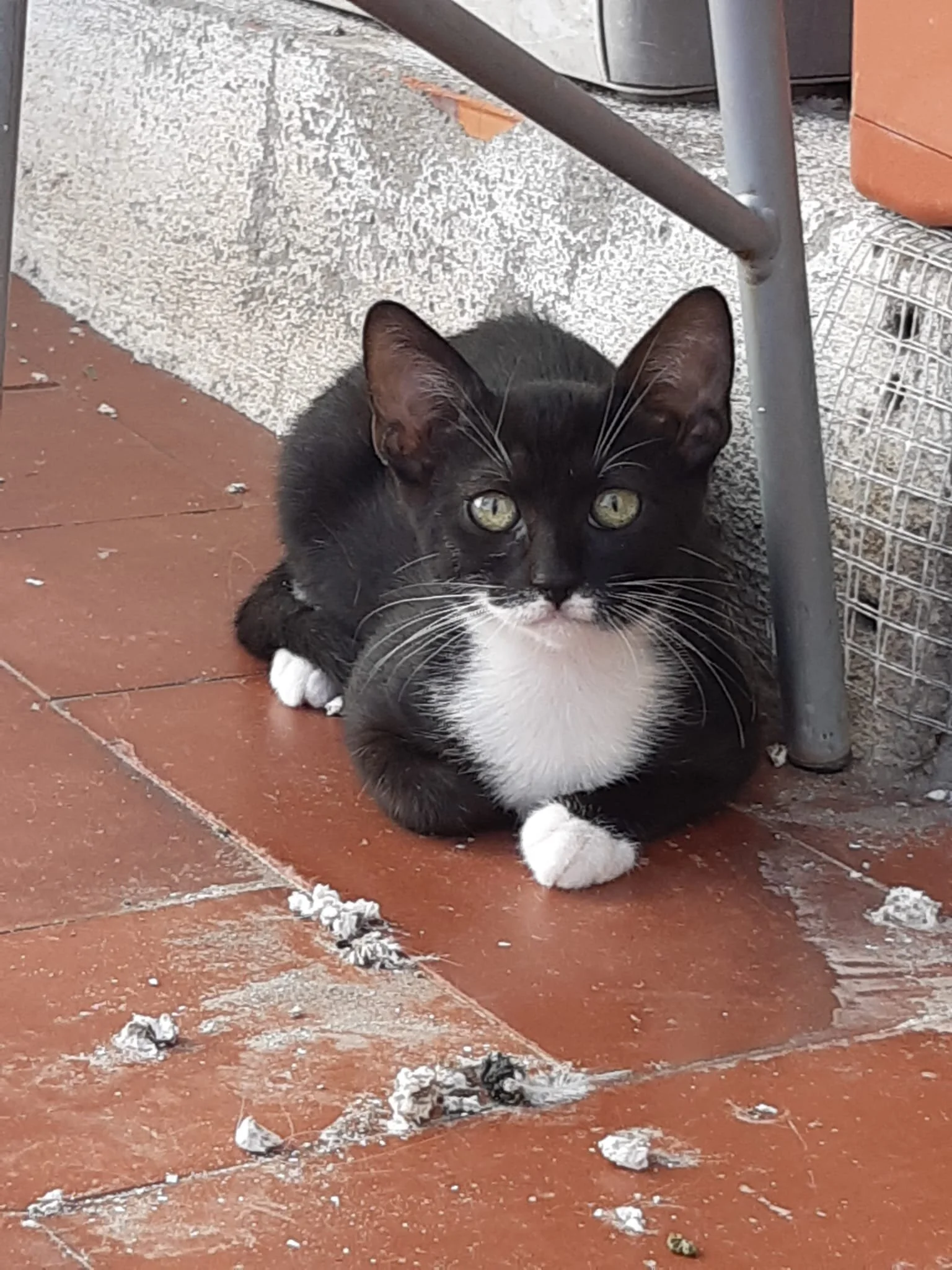 Harriet (black and white girl) is a dear kitten. She is gentle, playful, and starting to get her purr motor going and approach humans for those good pats. And she has wonderful big ears ❤ She would do wonderfully being adopted as a pair with Kieran, particularly with a single person or couple who would enjoy having a close bond with their cat. And while we like to see our babies go together, we think she could also be a single cat for the right person or home.