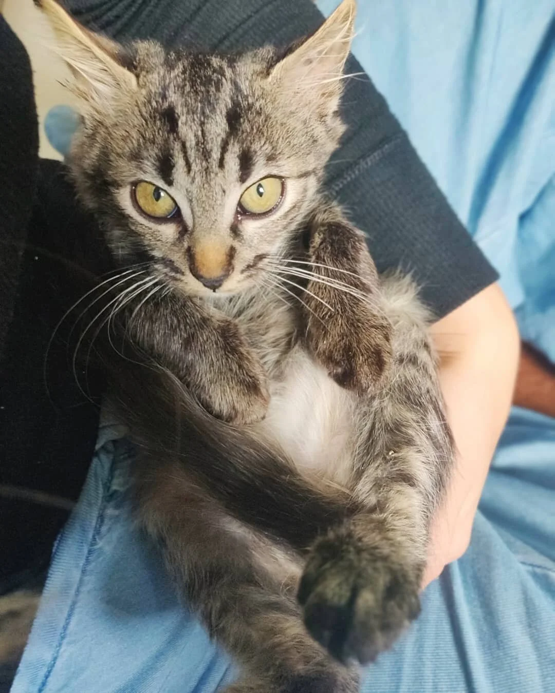 Personalidad: Miko es un gatito dulce, tranquilo y amante de la diversión. Él tiene el hábito más lindo de acercarse a su mamá de acogidaa con la cola levantada cuando ella entra en la habitación y simplemente la rodea para que reciba mimos. Maúlla y ronronea, y es súper sociable y dulce. ¡Su comportamiento relajado oculta el hecho de que está muy listo para jugar todo el tiempo! Los juguetes son la forma más fácil de llegar a su corazón. Le gusta especialmente cualquier cosa que arrastres mientras corre tras ella. Cuando no está jugando, Miko se pone zen, se relaja y duerme. Puede que sea un poco tímido al principio, pero cuando le dan mimos en tu regazo se siente muy cómodo y disfruta de los mimos y la atención. Es un amor total.