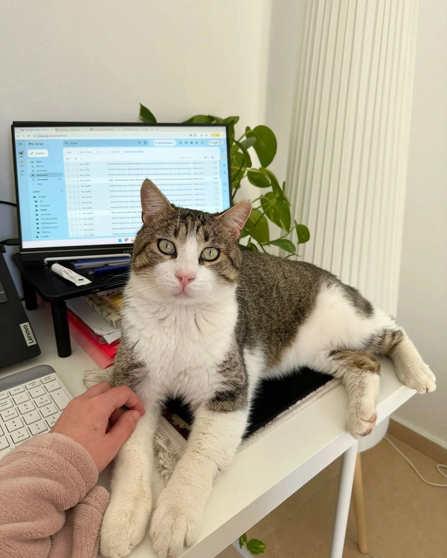 He steals the show during Zoom meetings by jumping onto the desk and then lying down on the keyboard. He seems deeply confused about why I’m talking to a screen.
