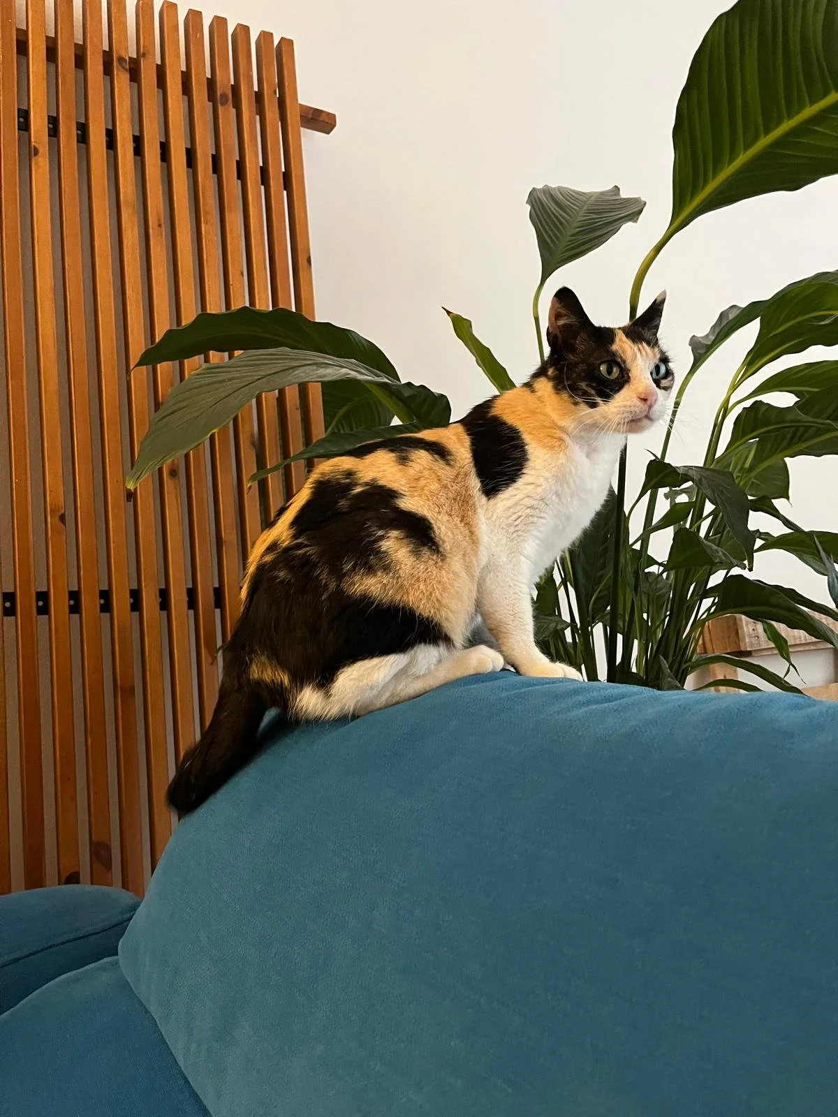 Her personality is a beautiful mix of curiosity and caution. She takes an interest in everything happening around her, but always from the safety she values so much, never venturing too far or for too long. Her favorite observation spot? Without a doubt, the balcony 🌿. She loves watching people and pigeons from the window, and when it’s open, she carefully moves closer to observe the outside world while still feeling safe indoors.