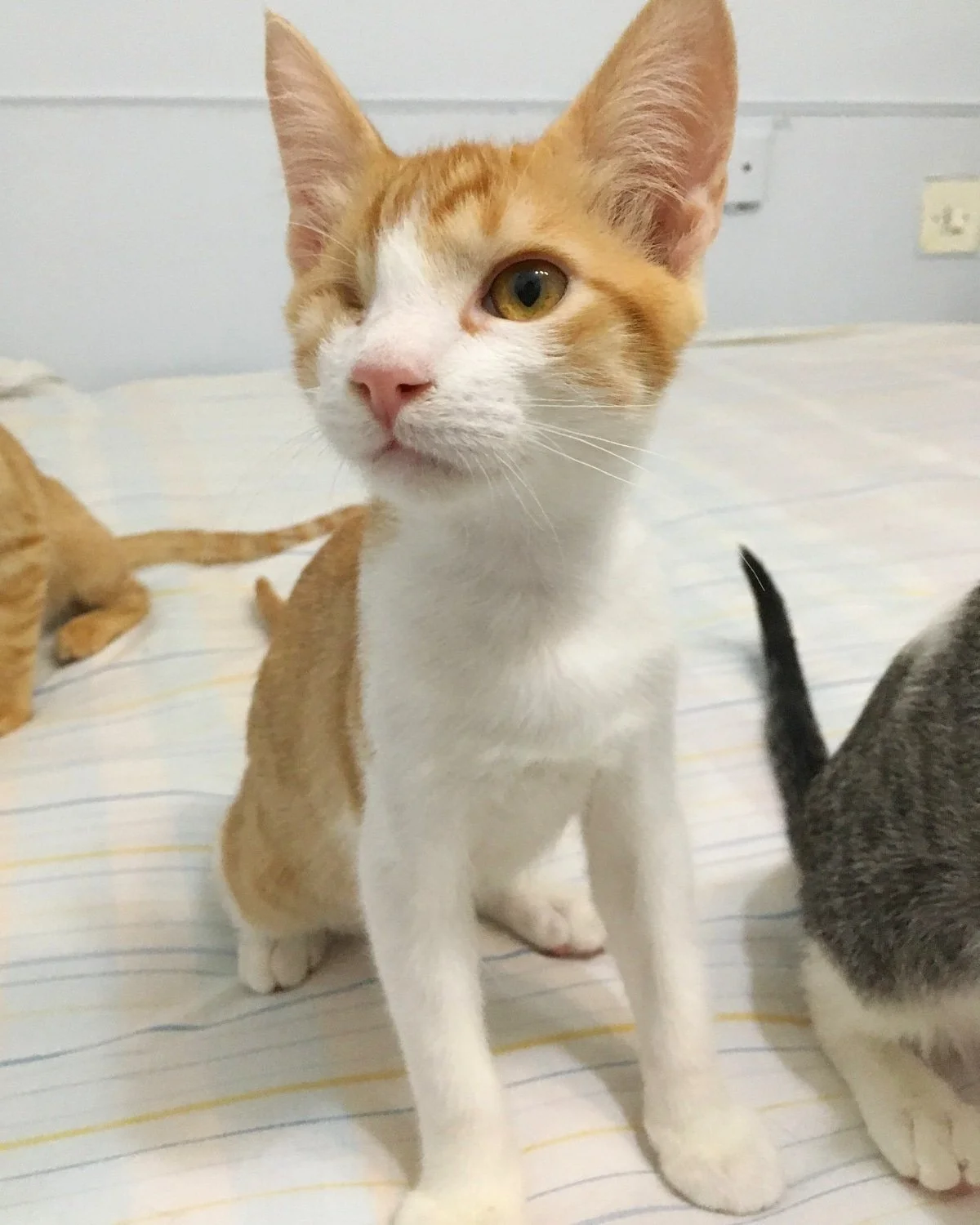 Nota médica: A Rumi le han quitado un ojo, junto con otros dos gatitos en su colonia. Esto se debe a un virus común de los gatos que lamentablemente ataca el sistema respiratorio y los ojos. Llevará una vida normal y no requiere cuidados especiales. No es ningún riesgo para otros gatos.
