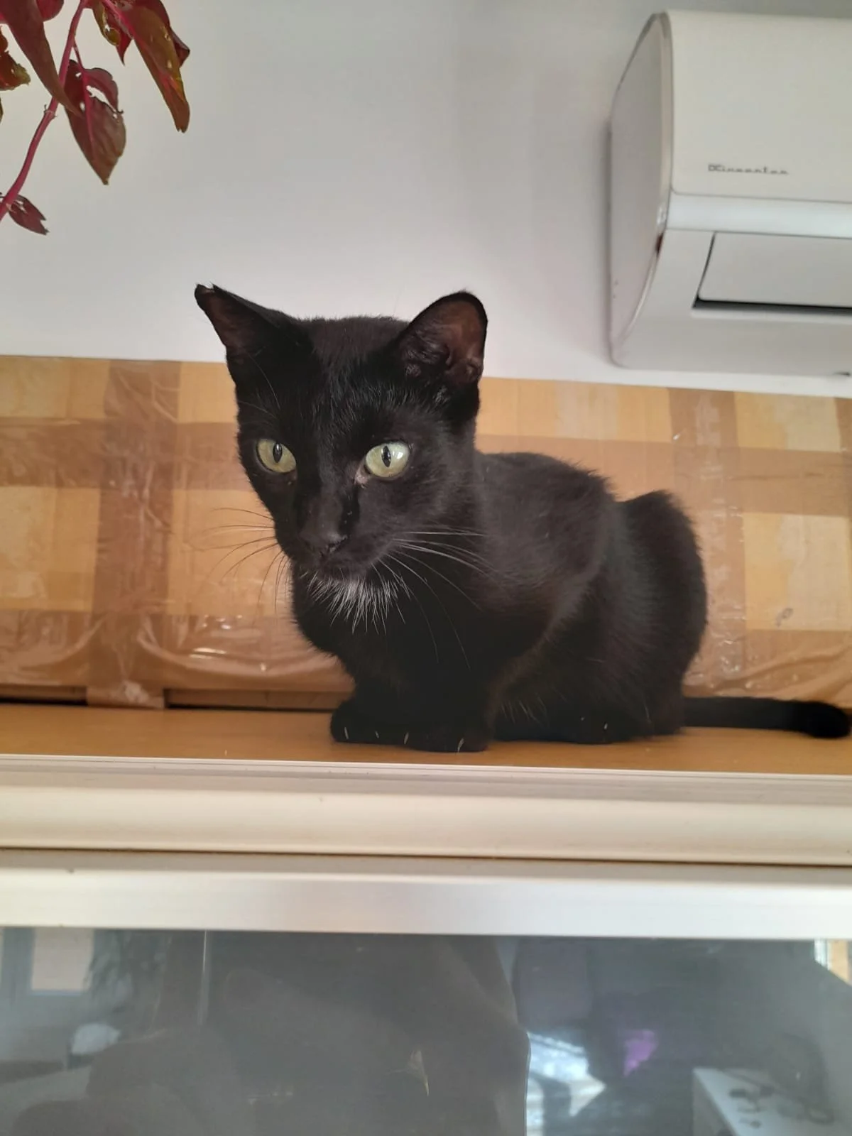 Sibila es una gatita muy curiosa pero tímida, cuando tiene confianza le gusta seguirte y cotillear qué estás haciendo.